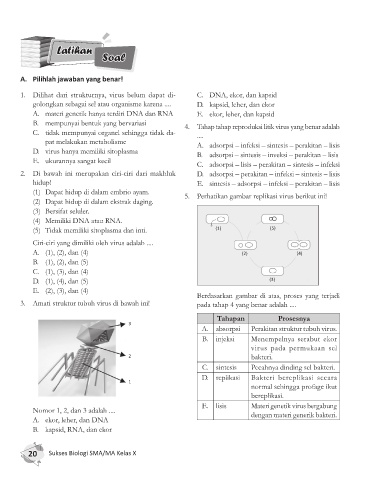 B. mempunyai bentuk yang bervariasi 4. Tahap tahap reproduksi litik virus yang benar adalah