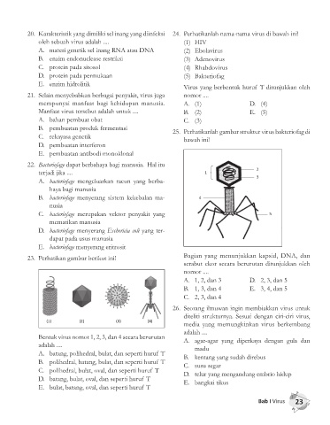20. Karakteristik yang dimiliki sel inang yang diinfeksi 24. Perhatikanlah nama-nama virus di bawah ini!