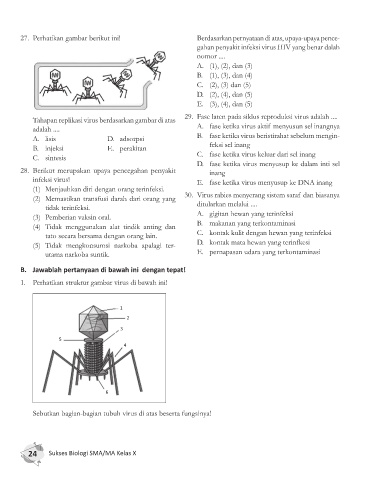 Tahapan replikasi virus berdasarkan gambar di atas 29. Fase laten pada siklus reproduksi virus adalah ....