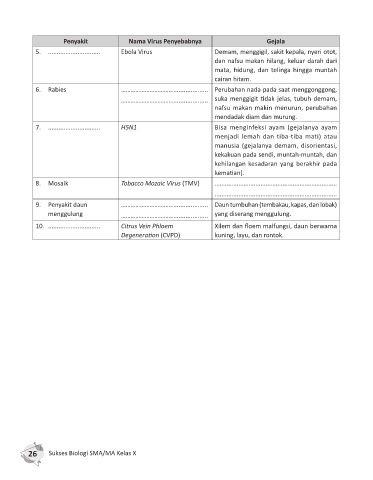 5. .............................. Ebola Virus Demam, menggigil, sakit kepala, nyeri otot,