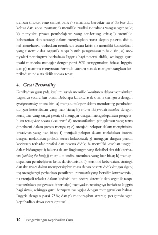 tugasnya secara luar biasa. Beberapa karakteristik utama dari guru dengan