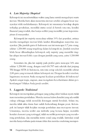 Sementara itu, jika late majority pada profesi guru mencapai 34% atau