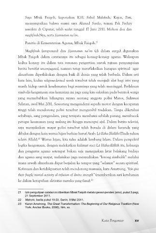 21 Izin pengutipan catatan ini diberikan Mbak Faiqoh melalui pesan pendek (sms), pukul 3 pagi,