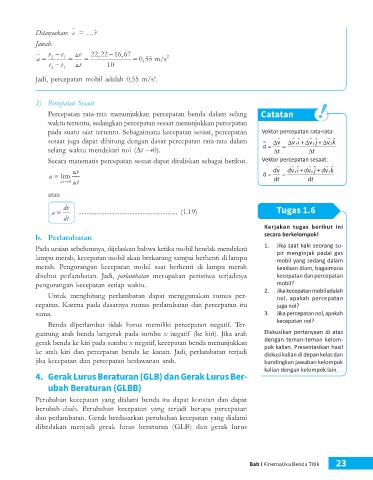 Percepatan rata-rata menunjukkan percepatan benda dalam selang Catatan