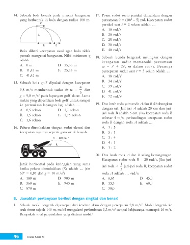 15.  Sebuah bola golf dipukul dengan kecepatan         B.  34 rad/s 2