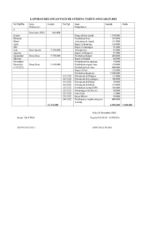 LAPORAN KEUANGAN PAUD HI AVESENA TAHUN ANGGARAN 2022
