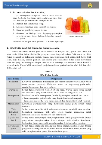Contoh dari zat gel pada gambar 1.4 adalah agar-agar.