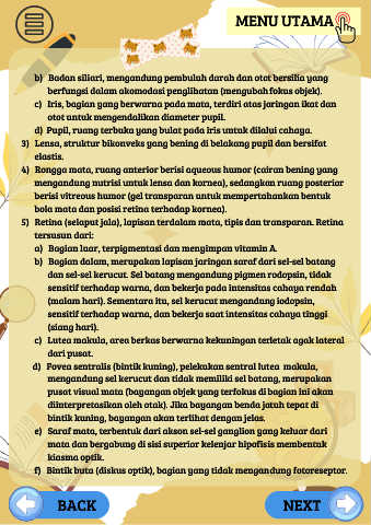 3) Lensa, struktur bikonveks yang bening di belakang pupil dan bersifat