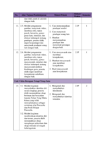 No. Alur Tujuan Pembelajaran Materi Pokok Semester