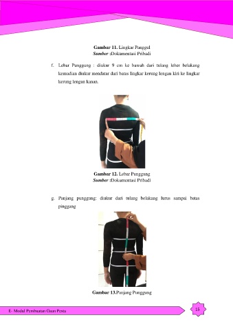 f. Lebar Punggung : diukur 9 cm ke bawah dari tulang leher belakang