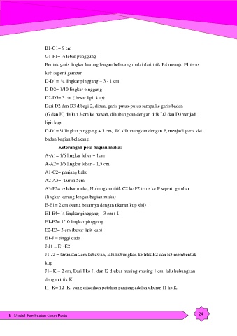 D-D1= ¼ lingkar pinggang + 3 cm, D1 dihubungkan dengan F, menjadi garis sisi