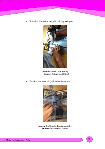 d. Kemudian dilanjutkan menjahit resleting pada gaun.