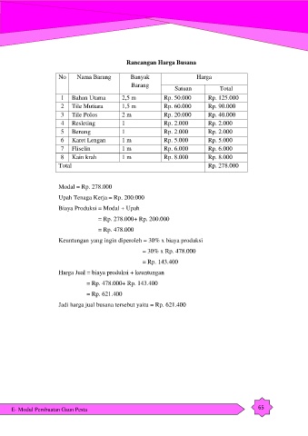 Jadi harga jual busana tersebut yaitu = Rp. 621.400