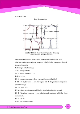 Menggambar pola system dressmaking dimulai dari pola belakang, tetapi