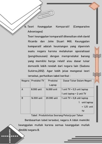 b. Teori Keunggulan Komparatif (Comparative
