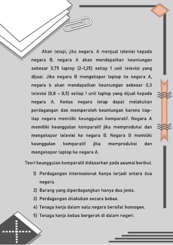 tiap negara memiliki keunggulan komparatif. Negara A