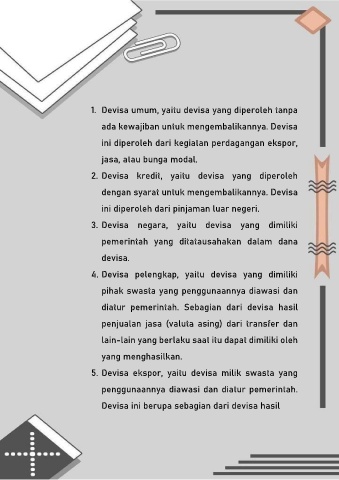 4. Devisa pelengkap, yaitu devisa yang dimiliki
