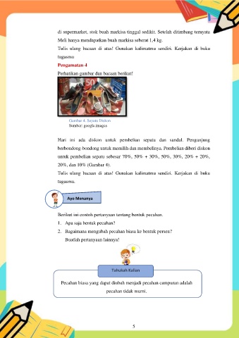 Hari ini ada diskon untuk pembelian sepatu dan sandal. Pengunjung