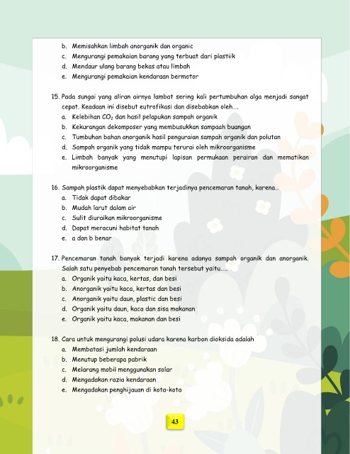 17. Pencemaran tanah banyak terjadi karena adanya sampah organik dan anorganik.