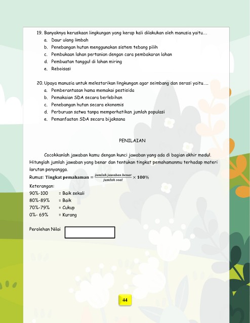19. Banyaknya keruskaan lingkungan yang kerap kali dilakukan oleh manusia yaitu….