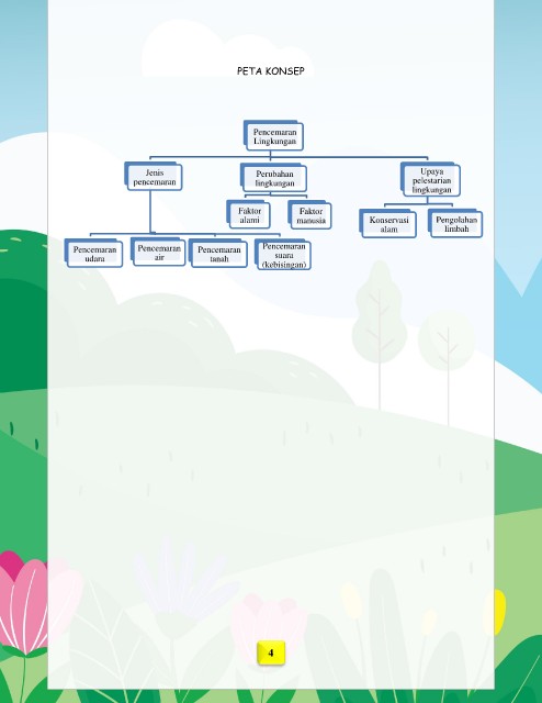 PETA KONSEP Pencemaran Lingkungan Jenis Perubahan Upaya pencemaran lingkungan pelestarian lingkungan Faktor Faktor alami manusia Konservasi Pengolahan alam limbah Pencemaran Pencemaran Pencemaran Pencemaran udara air tanah suara (kebisingan) 4