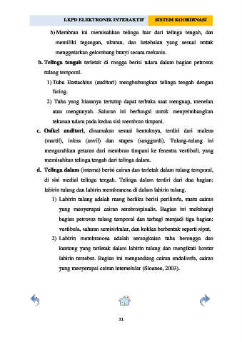 d. Telinga dalam (interna) berisi cairan dan terletak dalam tulang temporal,