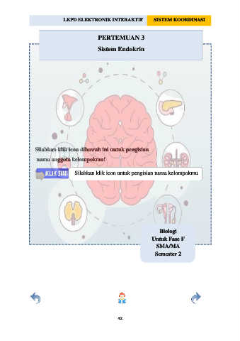 LKPD ELEKTRONIK INTERAKTIF SISTEM KOORDINASI PERTEMUAN 3 Sistem Endokrin Silahkan klik icon dibawah ini untuk pengisian nama anggota kelompokmu! Silahkan klik icon untuk pengisian nama kelompokmu Biologi Untuk Fase F SMA/MA Semester 2 42