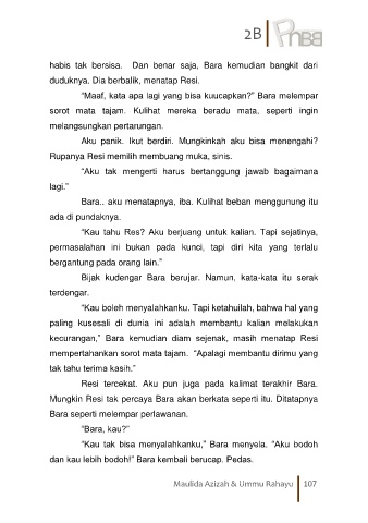 Resi tercekat. Aku pun juga pada kalimat terakhir Bara.