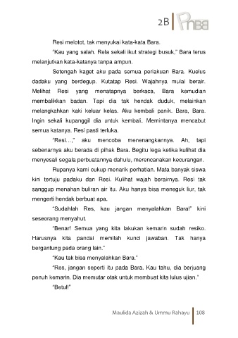 “Res, jangan seperti itu pada Bara. Kau tahu, dia berjuang