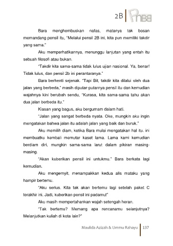 Bara berhenti sejenak. “Tapi Bit, takdir kita dilalui oleh dua