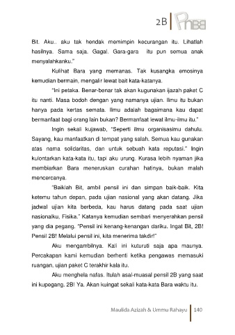 ini kupegang. 2B! Ya. Akan kuingat sekali kata-kata Bara waktu itu.