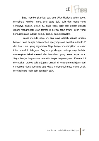 tokoh melalui dialognya. Begitu juga dengan setting, saya belajar
