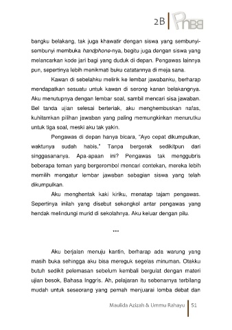 Aku menutupnya dengan lembar soal, sambil mencari sisa jawaban.