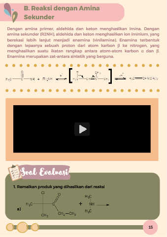 amina sekunder (R2NH), aldehida dan keton menghasilkan ion iminium, yang