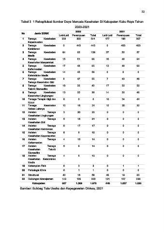 Tabel 3. 1 Rekapitulasi Sumber Daya Manusia Kesehatan Di Kabupaten Kubu Raya Tahun