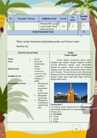 Butir setiap instrumen dijabarkan pada soal literasi sains