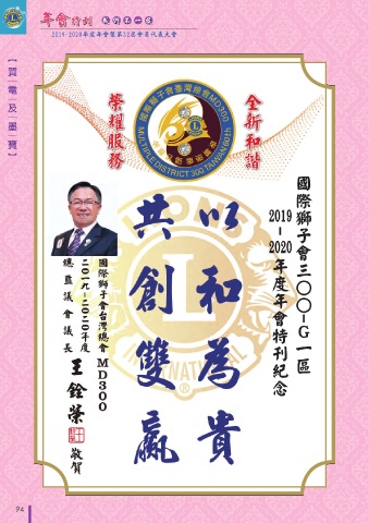 Page 96 - 國際獅子會300G1區2019-2020年度年會特刊