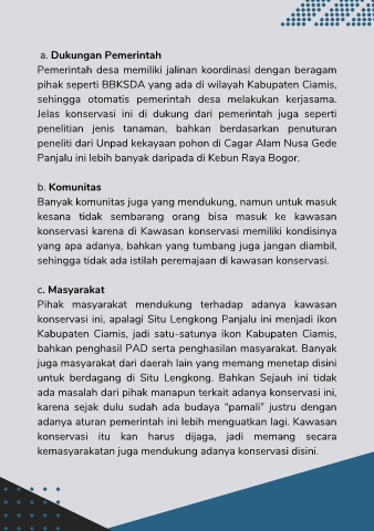 kemasyarakatan juga mendukung adanya konservasi disini.