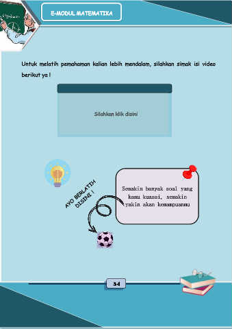 E-MODUL MATEMATIKA E-MODUL MATEMATIKA Untuk melatih pemahaman kalian lebih mendalam, silahkan simak isi video berikut ya ! Silahkan klik disini Semakin banyak soal yang kamu kuasai, semakin yakin akan kemampuanmu