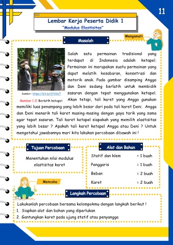 yang lebih besar ? Apakah tali karet ketapel Angga atau Deni ? Untuk