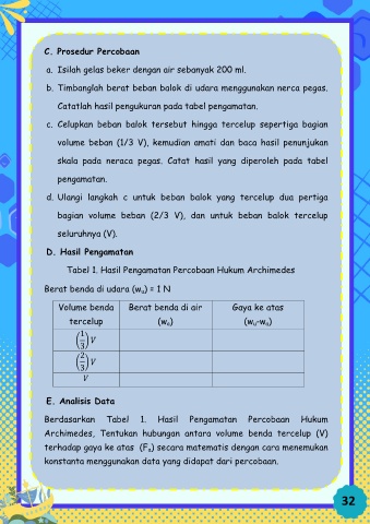 d. Ulangi langkah c untuk beban balok yang tercelup dua pertiga