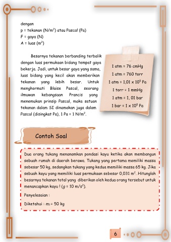 bekerja. Jadi, untuk besar gaya yang sama, 1 atm = 76 cmHg