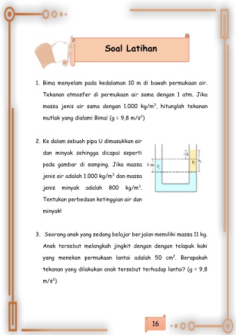 1. Bima menyelam pada kedalaman 10 m di bawah permukaan air.