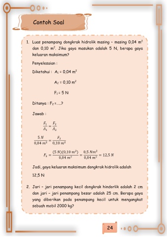 1. Luas penampang dongkrak hidrolik masing – masing 0,04 m