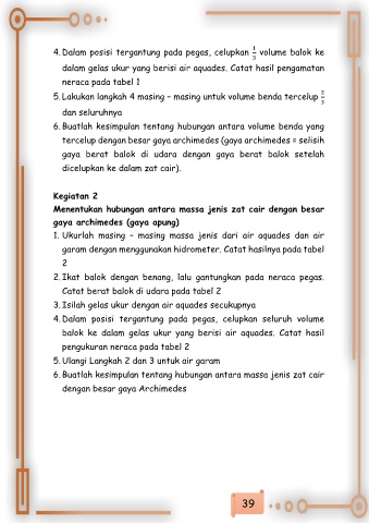 4. Dalam posisi tergantung pada pegas, celupkan volume balok ke