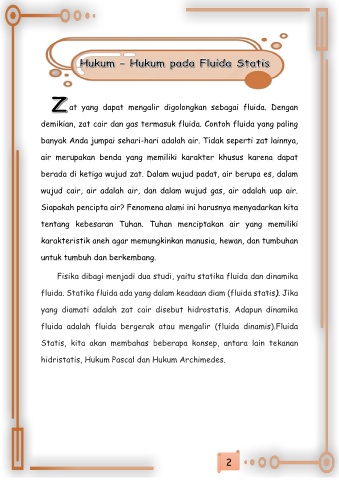 fluida. Statika fluida ada yang dalam keadaan diam (fluida statis). Jika