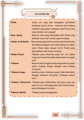 Gaya Apung : Gaya ke atas yang dikerjakan oleh fluida yang