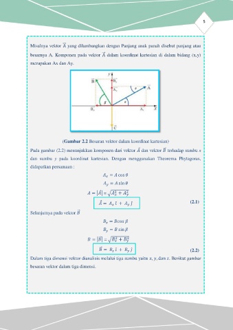 (Gambar 2.2 Besaran vektor dalam koordinat kartesian)