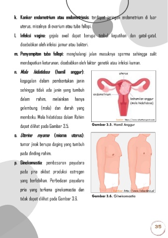 k. Kanker endometrium atau endometriosis: terdapat jaringan endometrium di luar