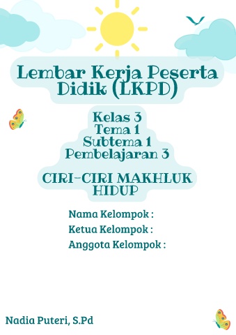 Lembar Kerja Peserta Didik (LKPD) Kelas 3 Tema 1 Subtema 1 Pembelajaran 3 CIRI-CIRI MAKHLUK HIDUP Nama Kelompok : Ketua Kelompok : Anggota Kelompok : Nadia Puteri, S.Pd